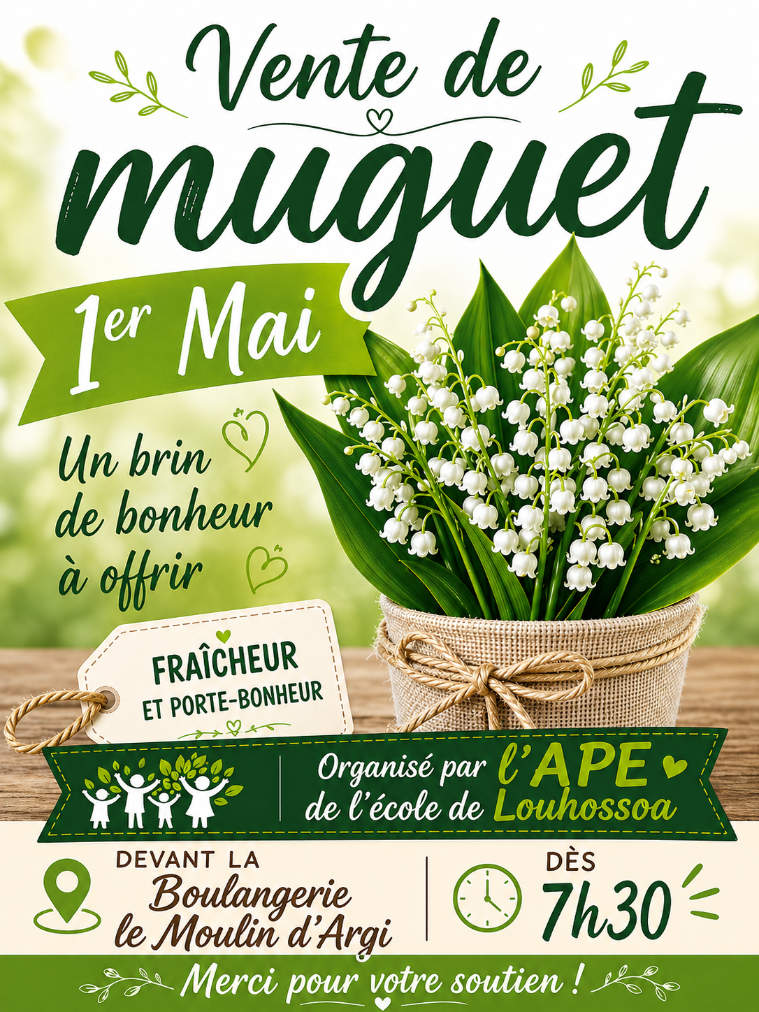 Vente de muguet par l’APE Une vente de muguet est organisé le 1er mai par l’association des parents d’élèves devant la boulangerie. Date Mai 01 2026 Heure 07:30 du matin Partagez cet événement